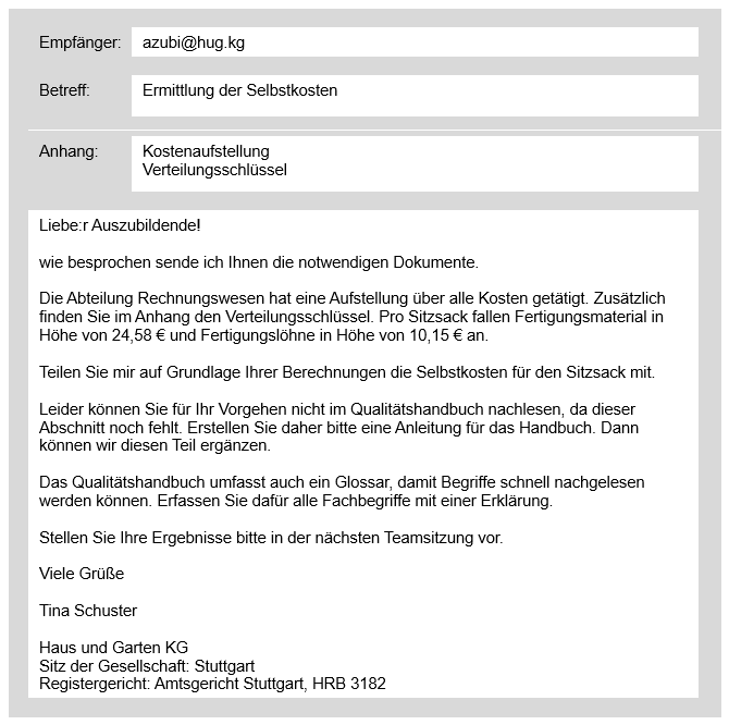 1. Berechnen Sie die Selbstkosten für den Sitzsack.