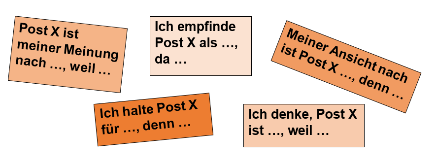 2. Notieren Sie Ihre Meinung zu dem von Ihnen ausgewählten Post. Begründen Sie Ihren Standpunkt. Sie können sich dazu an den Formulierungshilfen orientieren.