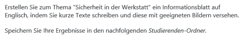 Learning project: Creating an information sheet about workshop safety