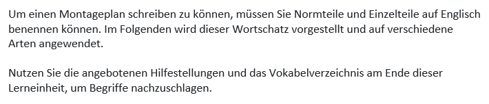 2. Discuss with a partner for about 2 minutes.In order to write an assembly plan, we must be able to name standard parts in English. In the following, this vocabulary will be introduced and used in different ways.