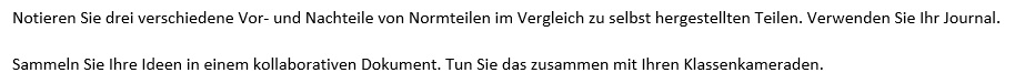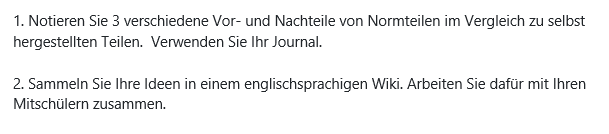 - … auf Englisch Vor- und Nachteile von Normteilen beschreiben.