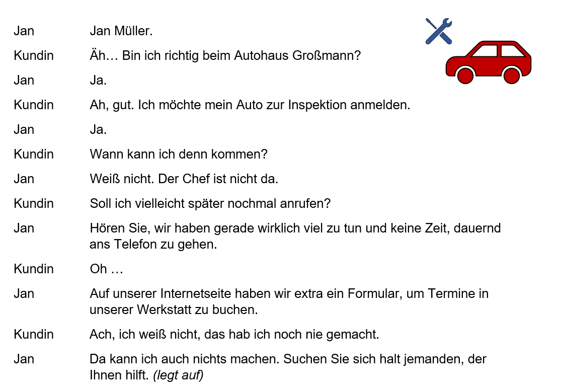 2. Besprechen Sie, welche Fehler der Auszubildende Jan gemacht hat.