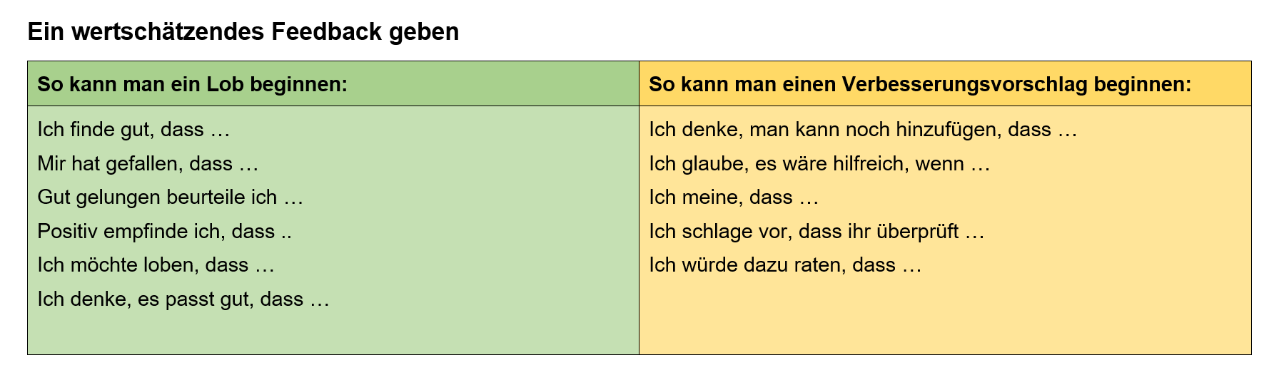 • ein wertschätzendes Feedback geben.