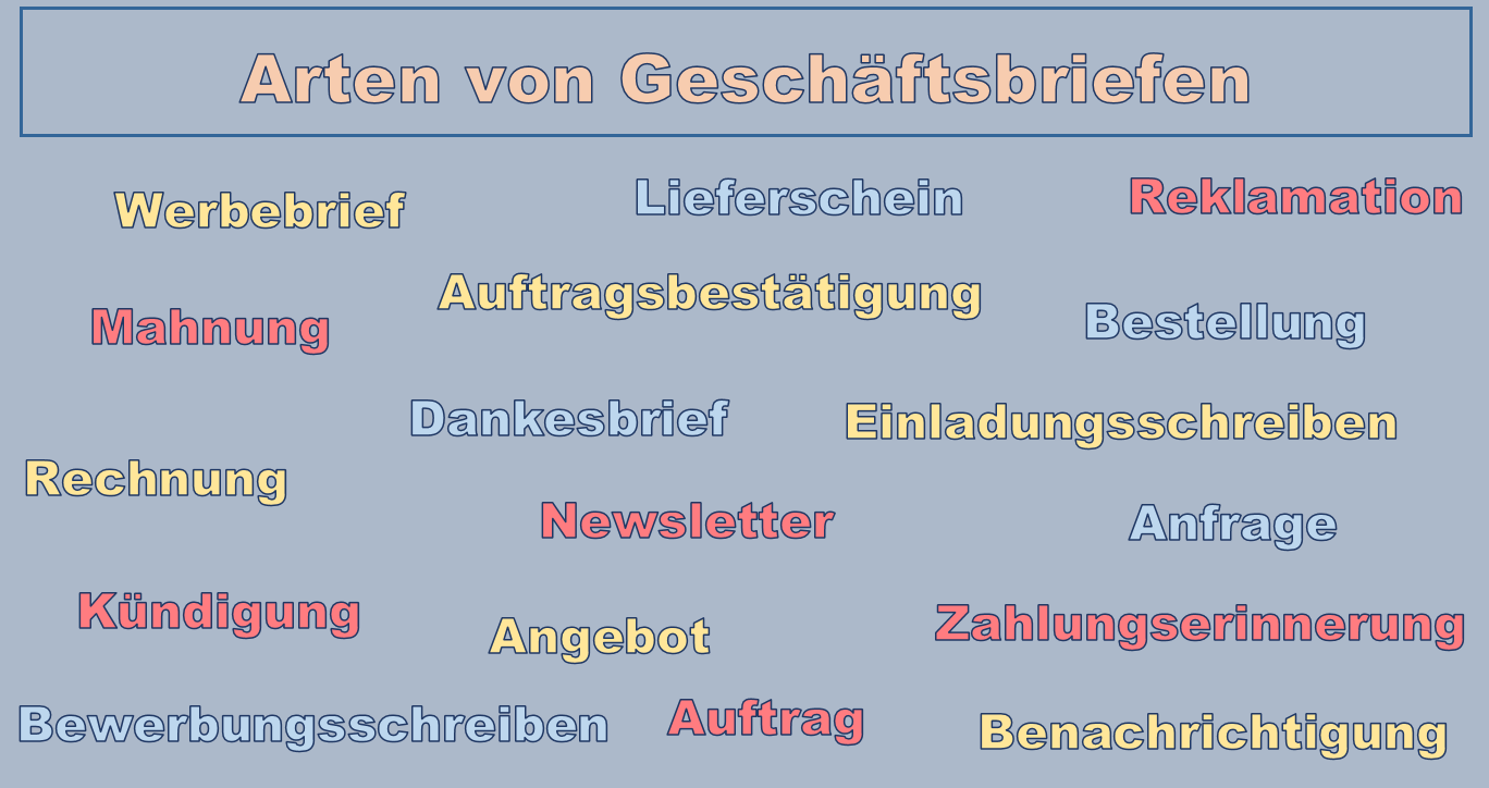 - verschiedene Arten von Geschäftsbriefen unterscheiden,