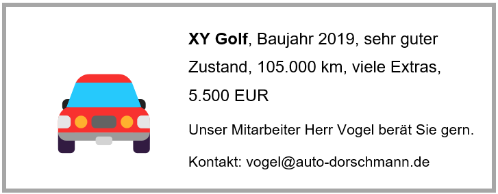 Sie möchten sich ein gebrauchtes Auto kaufen. Im Internet haben Sie dieses Angebot entdeckt: