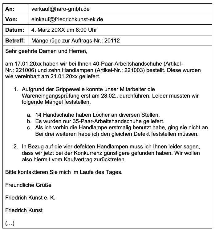 Beantworten Sie die E-Mail im Einstiegsfall. Begründen Sie mithilfe der Paragrafenangabe.