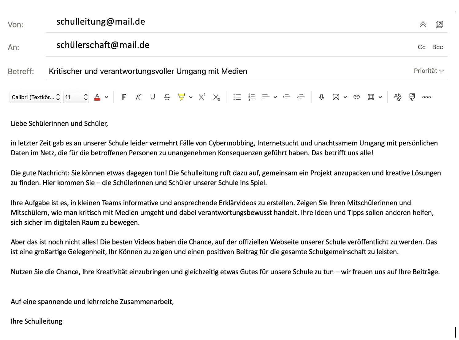 Mit dieser E-Mail wendet sich die Schulleitung nun an die gesamte Schülerschaft: