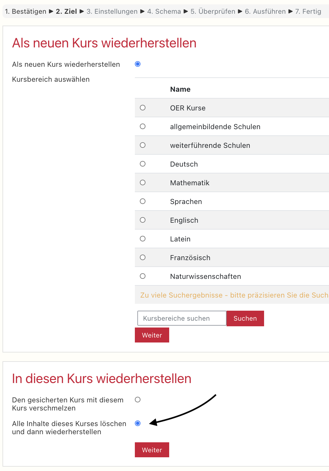2.) Wählen Sie dann im Bereich "In diesem Kurs wiederherstellen" den zweiten Punkt aus.