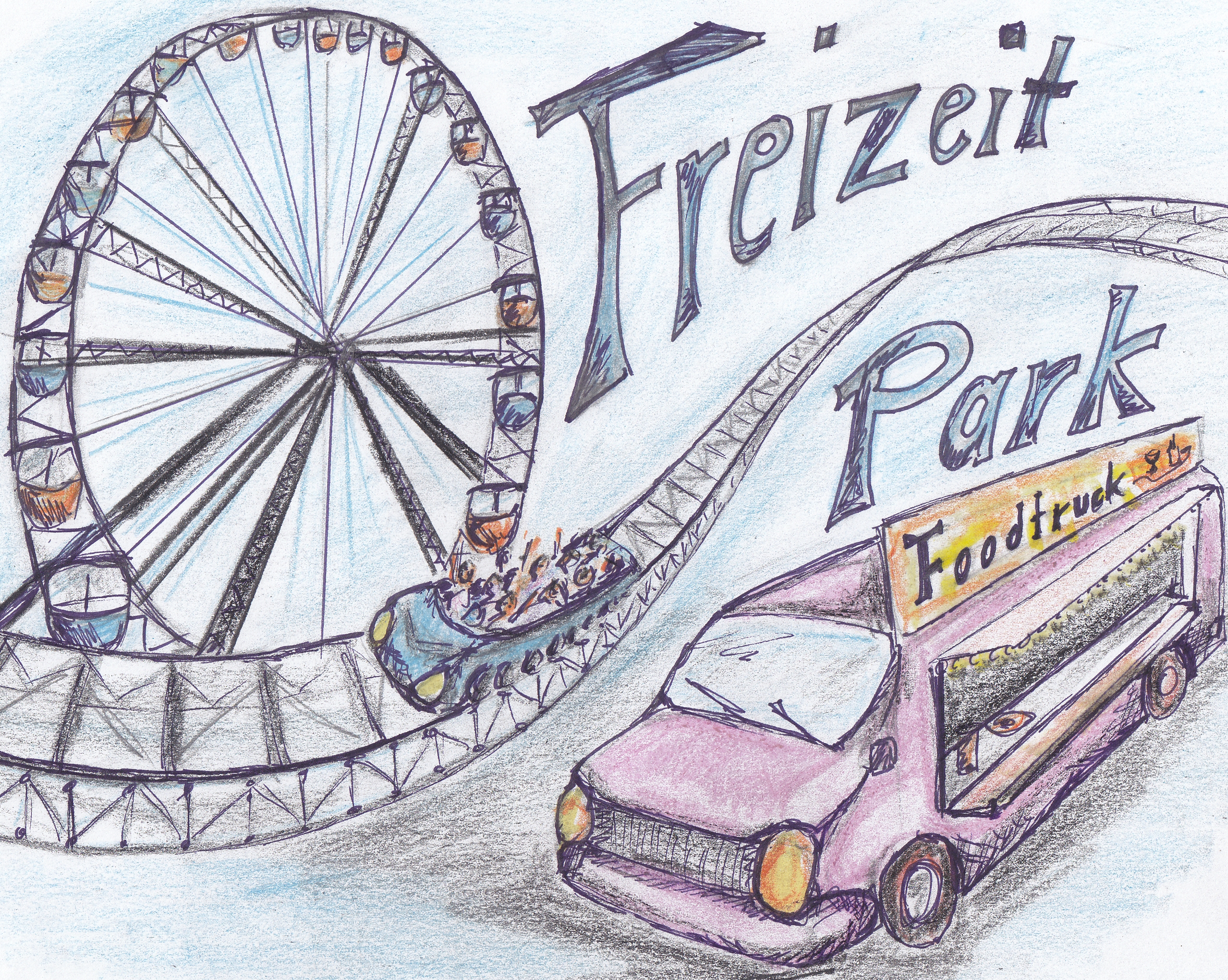 Einzelarbeit - Melden Sie sich mit Ihrem Namen an und betrachten Sie die obige Zeichnung eines Freizeitparks.