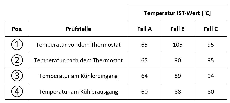 2. Begründen Sie, weshalb zur Diagnose des Kühlsystems die Temperaturmessung an den Stellen 1-2 sinnvoll ist.