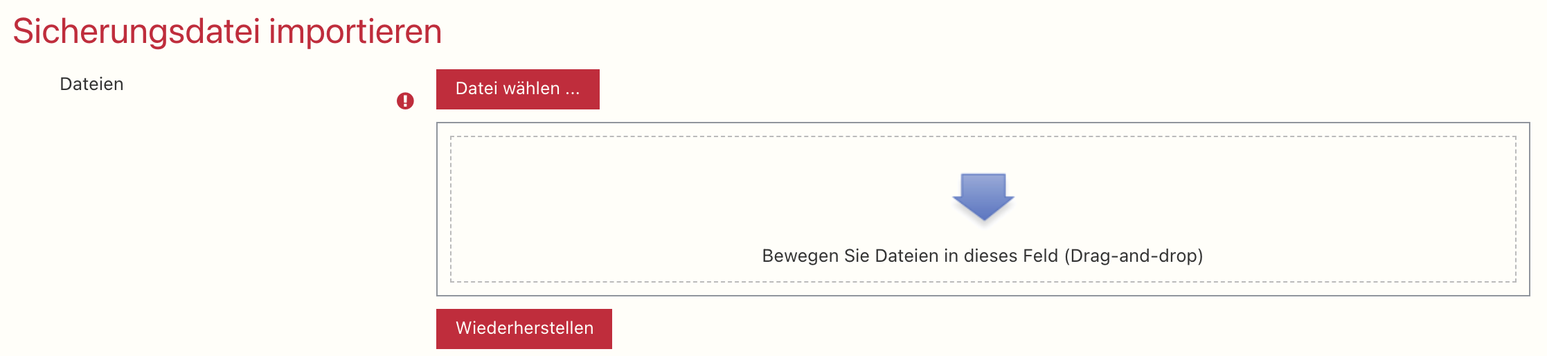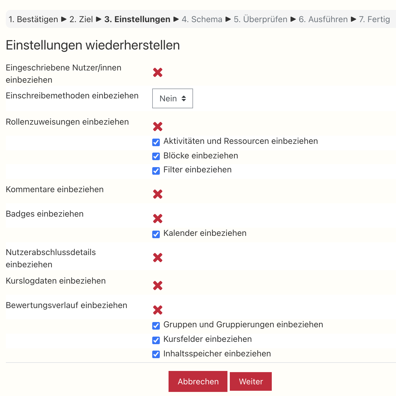 Sie werden von Moodle nun durch die Wiederherstellung geleitet.