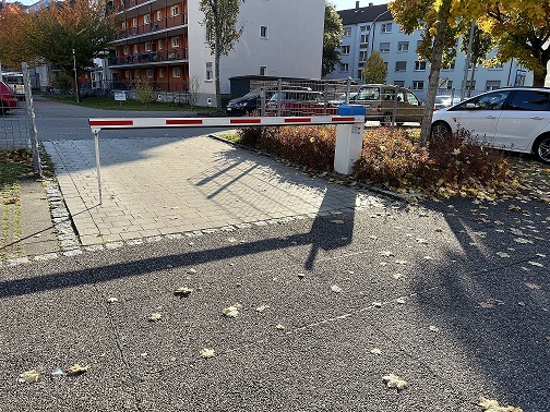 • Die Zufahrt zum Lehrerparkplatz Ihrer Schule wird über eine Schranke gesteuert. Der Schaltschrank der Schranke ist im oberen Bild auf der rechten Seite der Schranke zu sehen. Im Inneren des Schaltschranks befindet sich die Steuerung der Schranke.