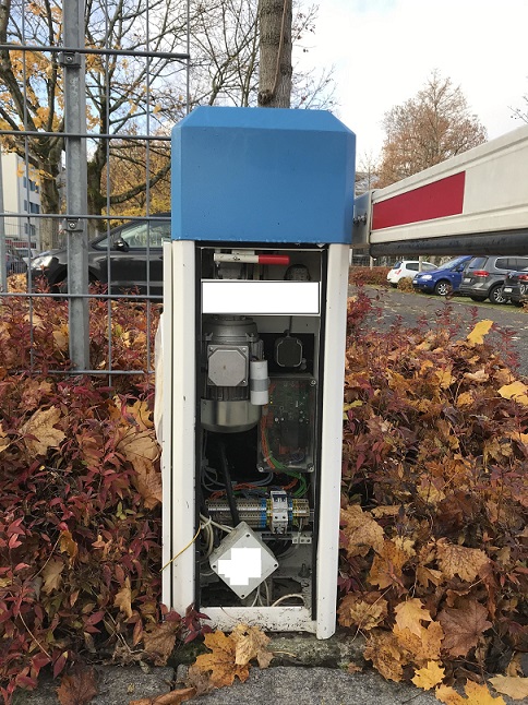• Wie Sie dem Bild entnehmen können, befindet sich der Motor der Schranke im Schaltschrank. Da der Motor ebenfalls beschädigt wurde, muss er komplett ausgetauscht werden.