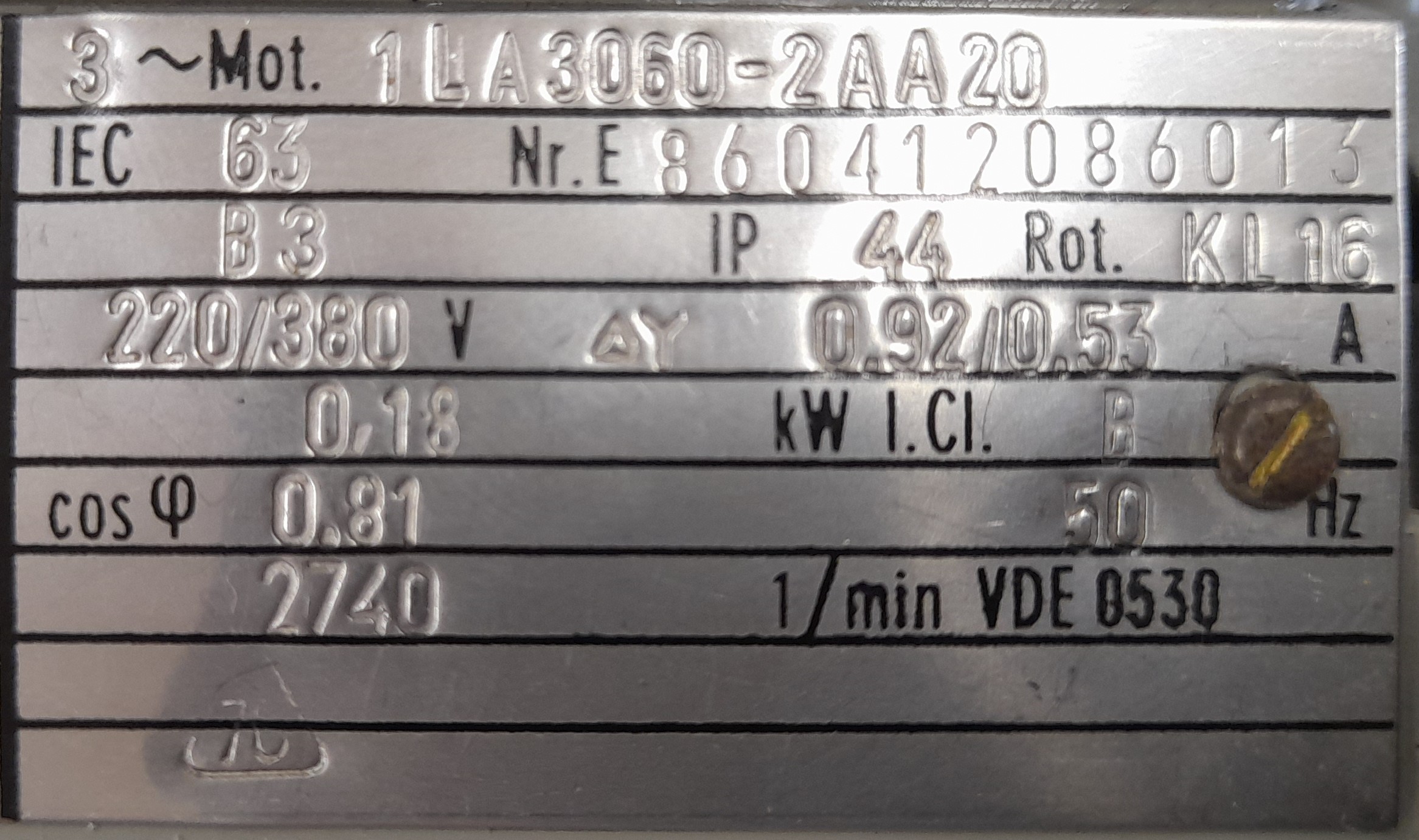 Ihnen wird ein Bild des Typschildes des Schrankenmotors angezeigt. Erklären Sie Ihrer Lernpartnerin/ Ihrem Lernpartner, welche Daten darauf angegeben sind.