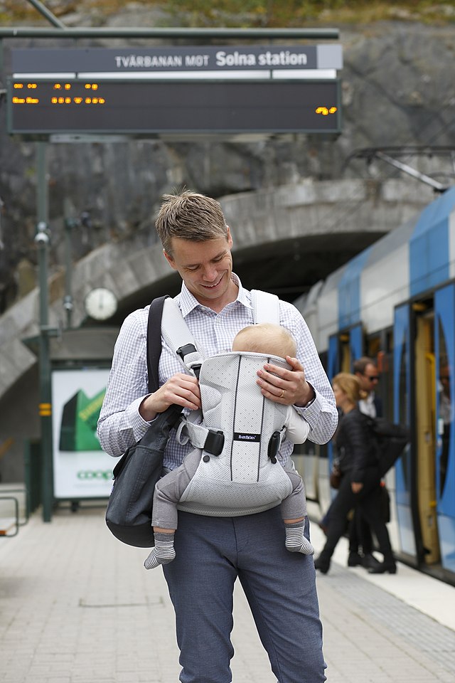 Source: Ah-Young Andersson, A Stockholm dad with his daughter in a BabyBjörn baby carrier. Keine Änderungen vorgenommen. CC BY-SA 4.0.