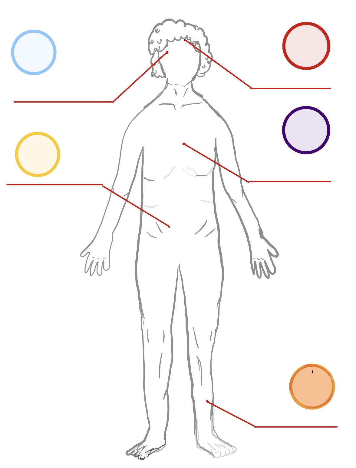 Beschriften Sie die Kreise mit möglichen Folgeerkrankungen von Diabetes mellitus Typ II. Schauen Sie sich die Videos von Arbeitsauftrag 1 bei Bedarf erneut an.