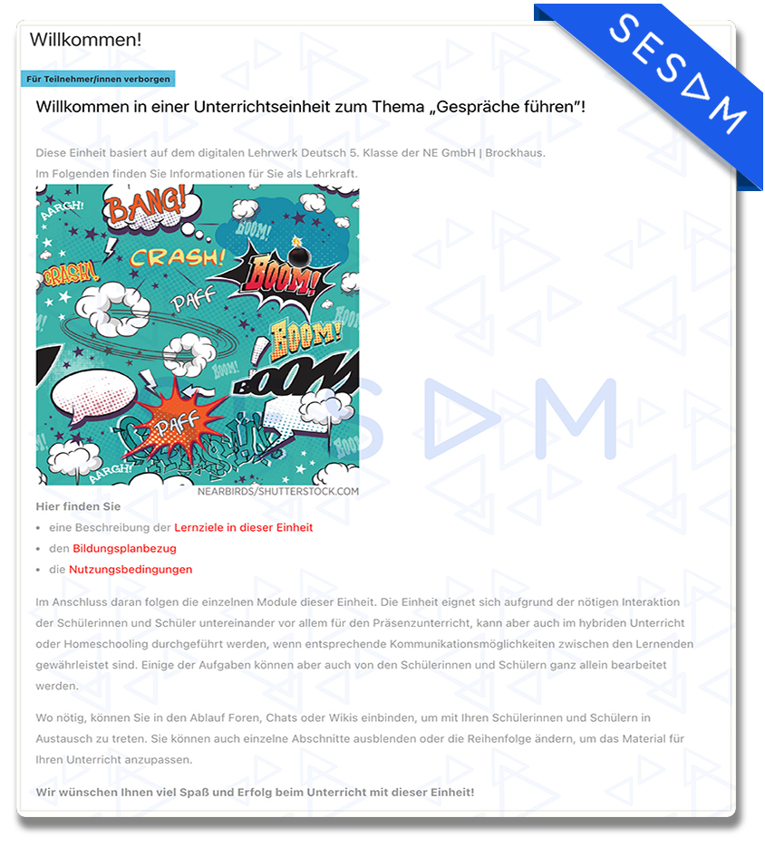 Diesen Kurs können Sie in der SESAM-Mediathek des LMZ herunterladen. Wenn Sie noch keinen Zugang haben, können Sie diesen auf der Startseite anfordern.