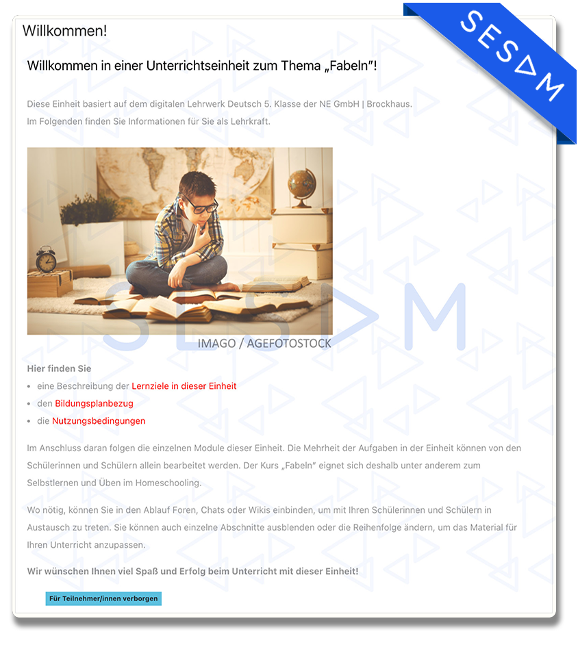 Die Mehrheit der Aufgaben in dieser Einheit können von den Schülerinnen und Schülern allein bearbeitet werden. Der Kurs „Fabeln” eignet sich deshalb unter anderem zum Selbstlernen und Üben im Homeschooling.