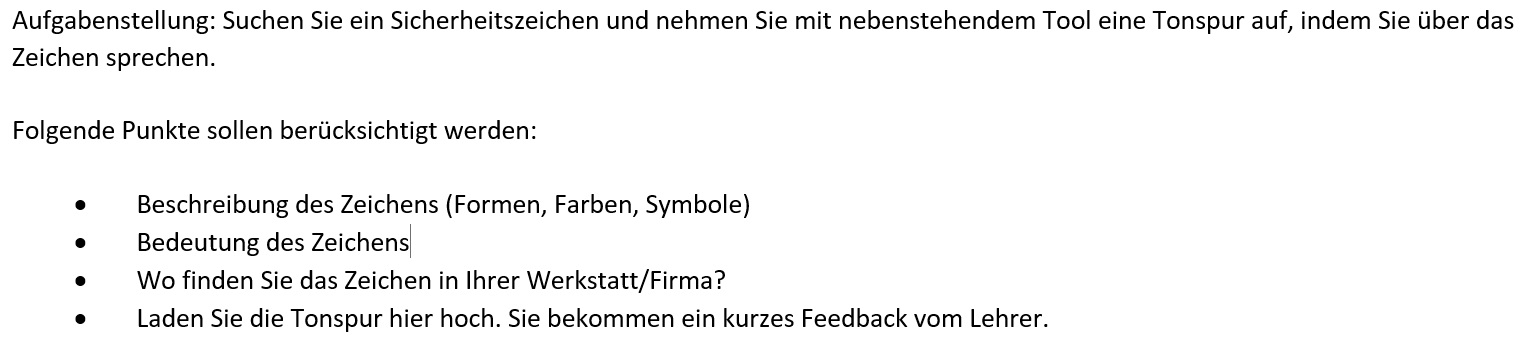 Find a safety sign and use the tool provided on the right to record an audio track by speaking about the sign.