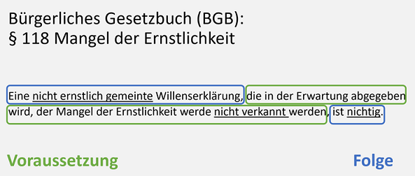Um einen Gesetzestext zu verstehen lesen Sie zunächst den vorliegenden Text einmal durch und markieren Sie unklare Worte.