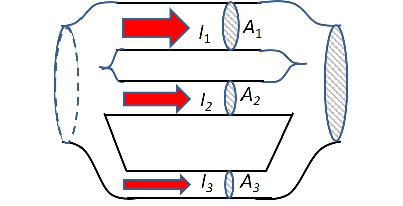 Da in desem Fall verschiedene Leiterstücke mit ihren Eigenschaften wie Länge, Durchmesser und spezifischen Widerstand parallel verlegt werden, ändert sich auch das Strömungsverhalten des fließenden Stoffes. Denn der Strom wird sich am Knotenpunkt zunächst aufteilen, um dann später wieder zusammenzukommen.