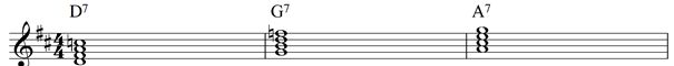 Du hast bemerkt, dass der Blues immer mit Septakkorden begleitet wird, vollständig sehen diese so aus: