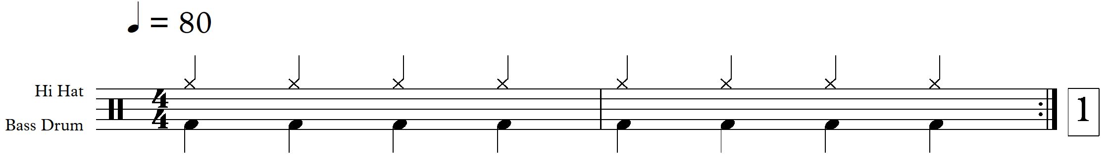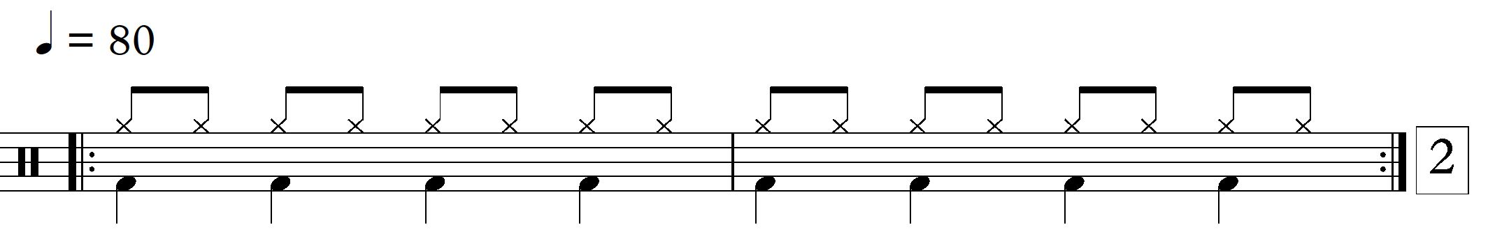 Wahrscheinlich hast du ja kein Drumset zu Hause, aber zum Üben geht Folgendes: