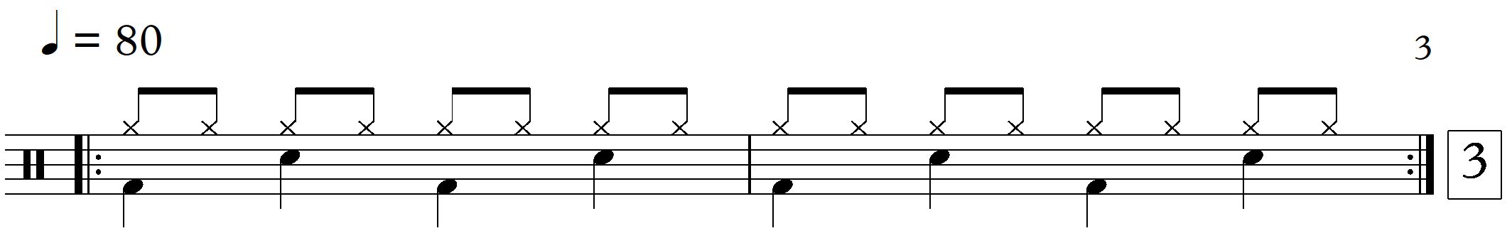 GROOVE 3: (jetzt mit der Snare Drum-Schlag auf Zählzeit "2" und "4")