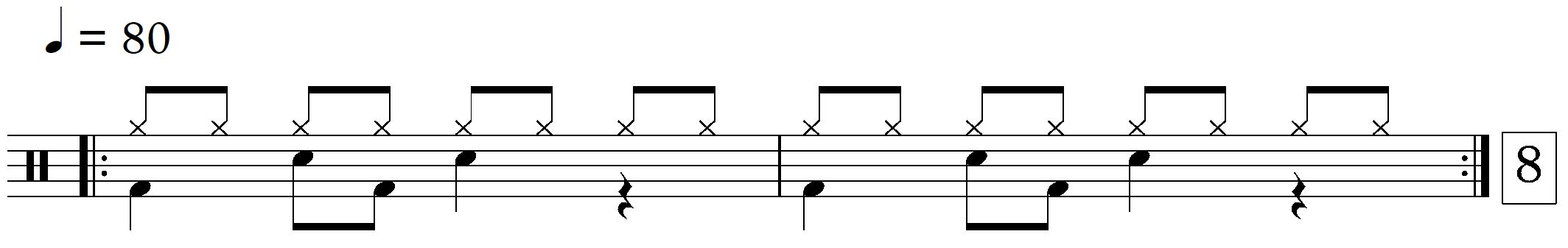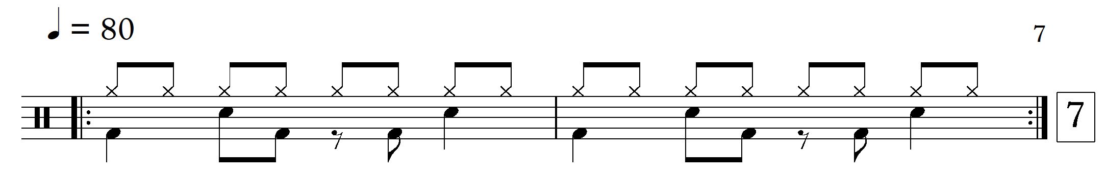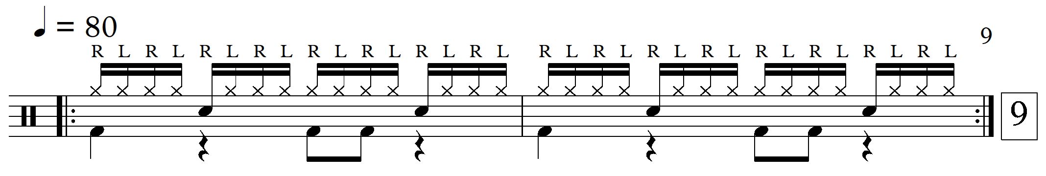 Der 9. Rhythmus ist echt schwer und er lässt sich fast nicht ohne Drumset spielen. Wichtig ist bei diesem Groove auch der Handwechsel (r. - l.).