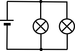 Beide Lampen haben den gleichen elektrischen Widerstand von 20 Ω. Die Batterie liefert eine Spannung von 6 V.