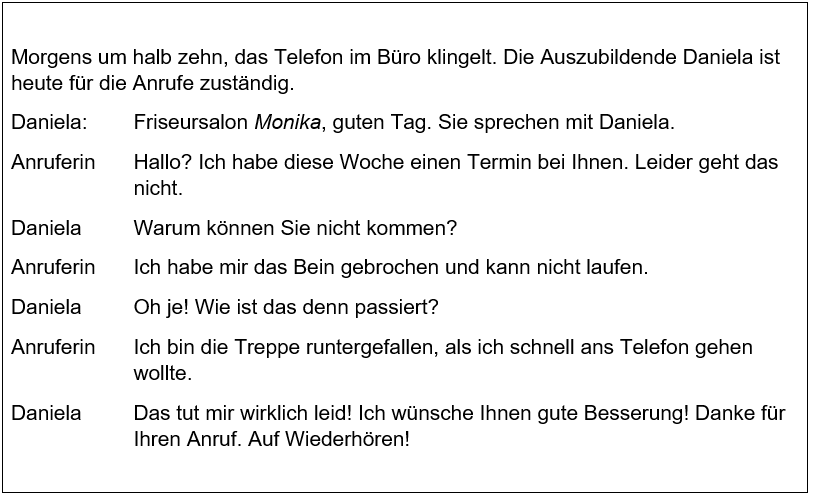 Als Daniela aufgelegt hat, bemerkt sie, dass ihr wichtige Informationen fehlen.