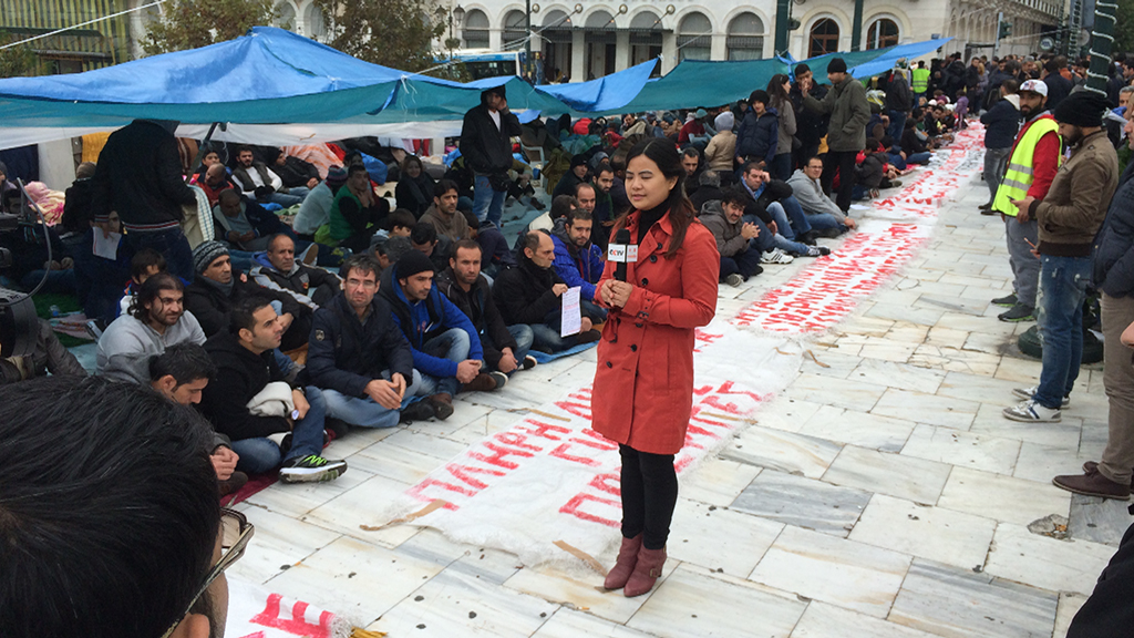 Von diesem Hungerstreik syrischer Flüchtlinge vor dem griechischen Parlament für eine Aufnahme in der Europäischen Union sendete keine europäische TV-Anstalt Bilder. Russisches und hier chinesisches Staatsfernsehen übertrugen hingegen live in ihren Nachrichtensendungen.