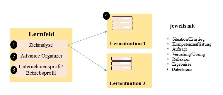 Lernfelder sind aus Handlungsfeldern des jeweiligen Berufs entwickelt und orientieren sich an Arbeits- und Geschäftsprozessen. Die einzelnen Lernsituationen bilden Teilhandlungen des Gesamtprozesses des Lernfeldes ab. Die Lernsituationen mit den dazugehörigen Handlungsergebnissen sind deshalb jeweils im Kontext des Gesamtprozesses zu betrachten.