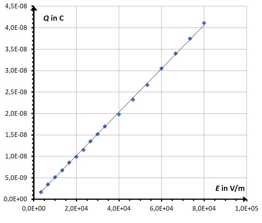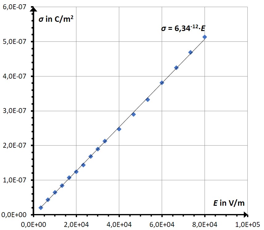 Der hier gemessene Wert für ε0 ist 6,34·10-12 C/Vm. Das ist eine Abweichung von etwa 28% vom Literaturwert ε0 = 8,85·10-12 C/Vm.