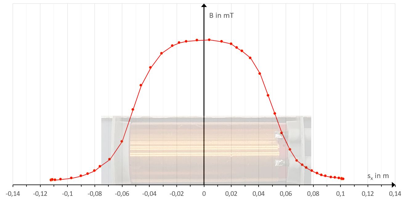 1. Die magnetische Flussdichte einer 6 cm langen Spule mit 100 Windungen