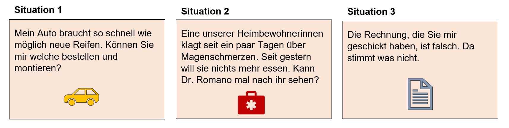 2. Besprechen Sie, welche weiteren Informationen Ihre Kolleginnen und Kollegen benötigen, um das Anliegen des Anrufers/der Anruferin zu bearbeiten.