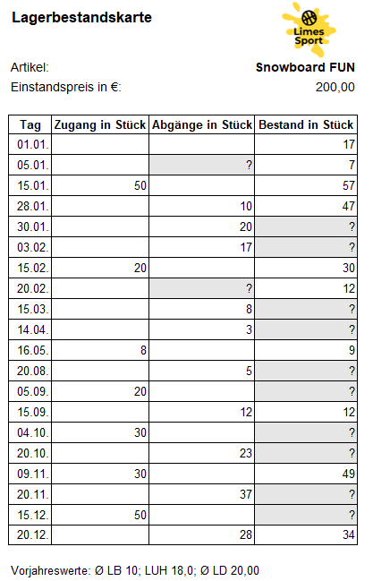 Lagerkarte Snowboard FUN (B)