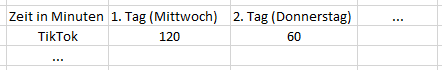 - Das erste Diagramm soll den Zeitraum, die Medienquellen und die genutzte Zeit zeigen. Dazu eignet sich ein Liniendiagramm.