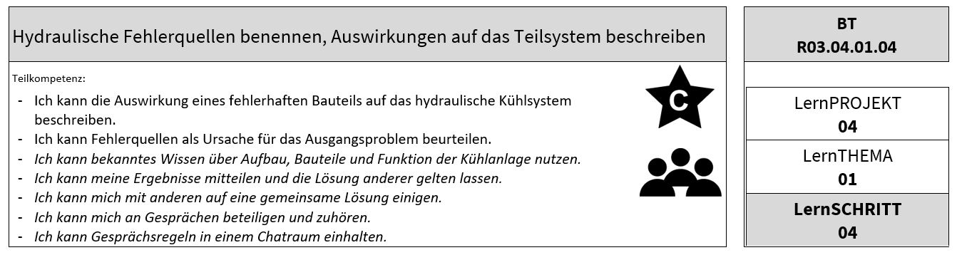 Beschreiben Sie in der Übersicht die Auswirkung auf das hydraulische Kühlsystem bei der jeweiligen vorgegebenen Fehlerbeschreibung.