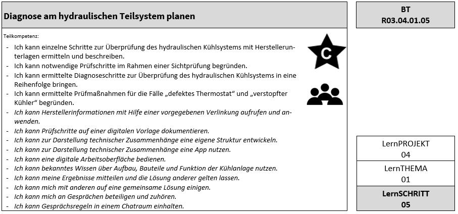 Entwickeln Sie in Ihrer Gruppe gemeinsam einen Ablaufplan zur Prüfung des hydraulischen Teilsystems der Kühlanlage.