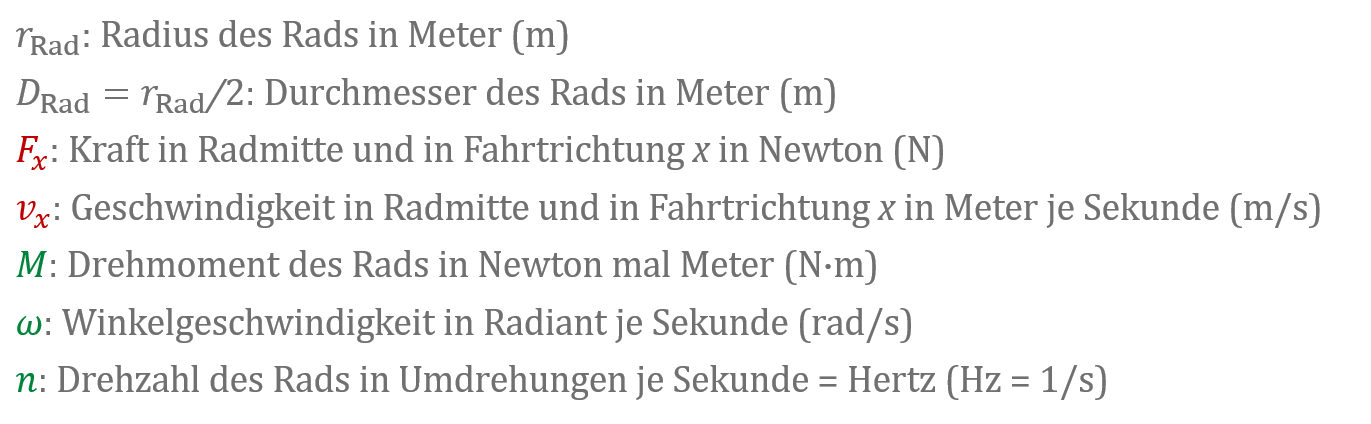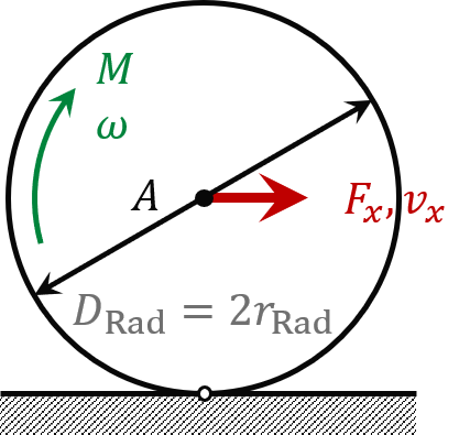 Zusammenhänge zwischen der translatorischen und der rotierenden Bewegung beim ideal rollenden Rad.